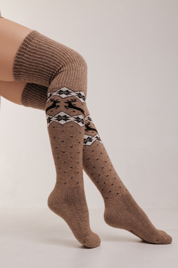 Чулки с оленями из 70% шерсти яка цвета капучино