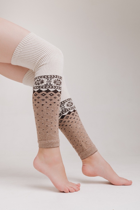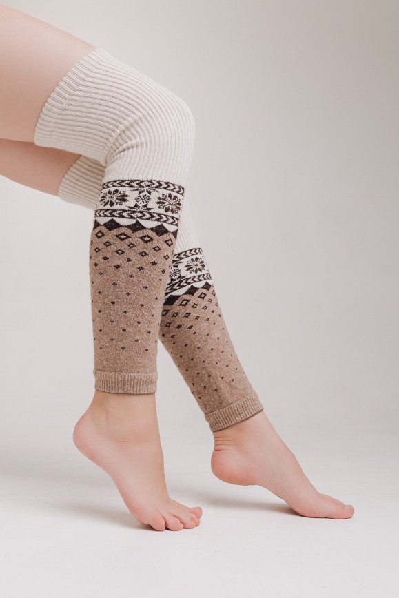 Гетры бежевые с узором из 70% шерсти яка