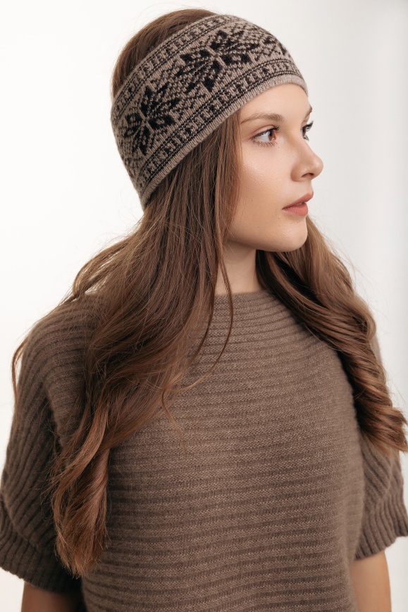 Наушники серые "Снежинка" из 100% шерсти яка