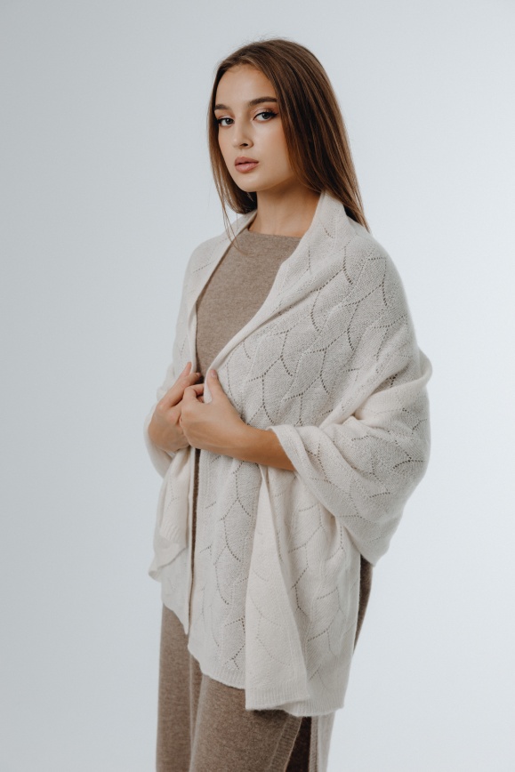 Палантин белый из 100% шерсти верблюда