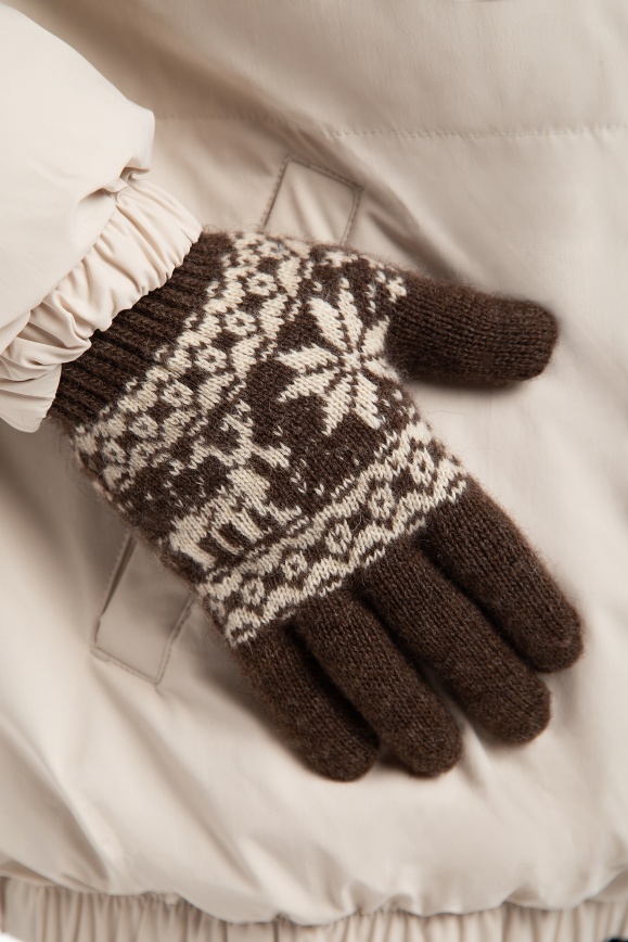 Перчатки коричневые "Снежинка" из 100% шерсти яка