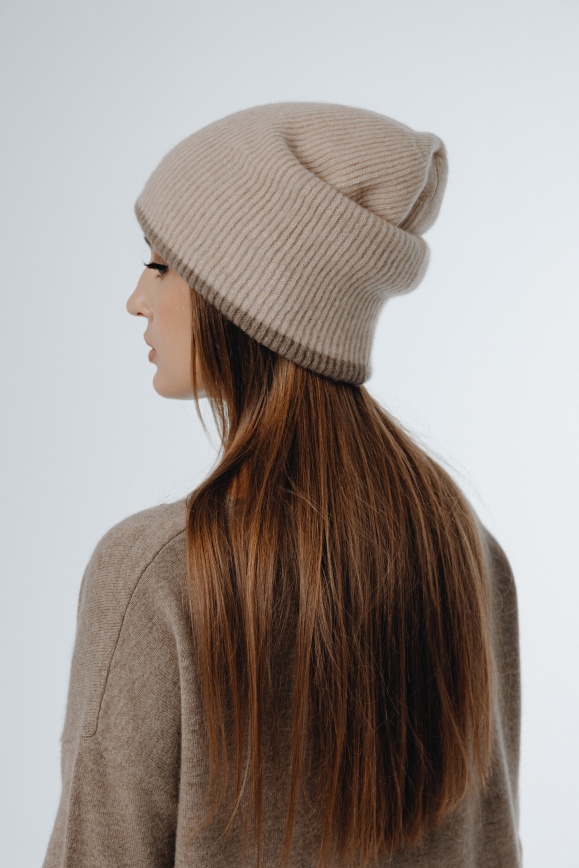 Шапка двухсторонняя из 100% кашемира бежевая
