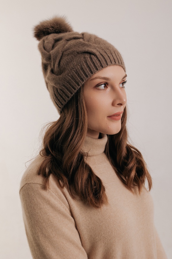 Шапка коричневая с пумпоном из кашемира