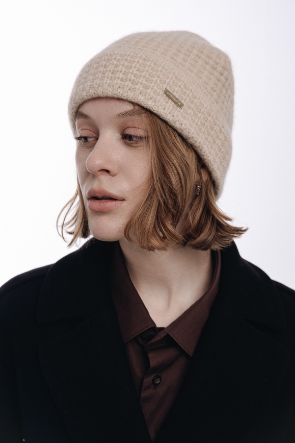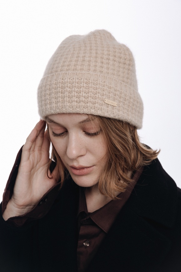 Шапка с узором из 100% кашемира бежевая