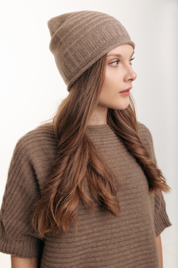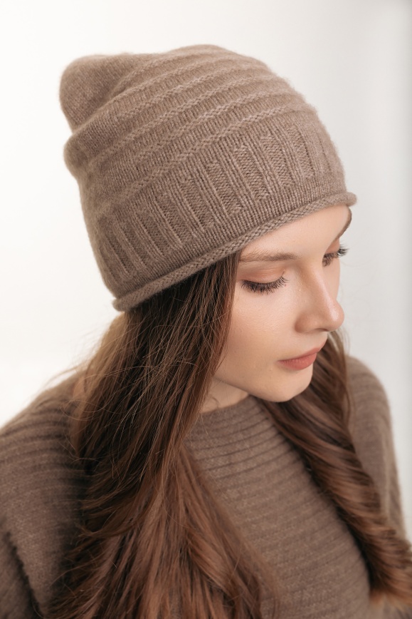 Шапка с узором из 100% кашемира цвета капучино