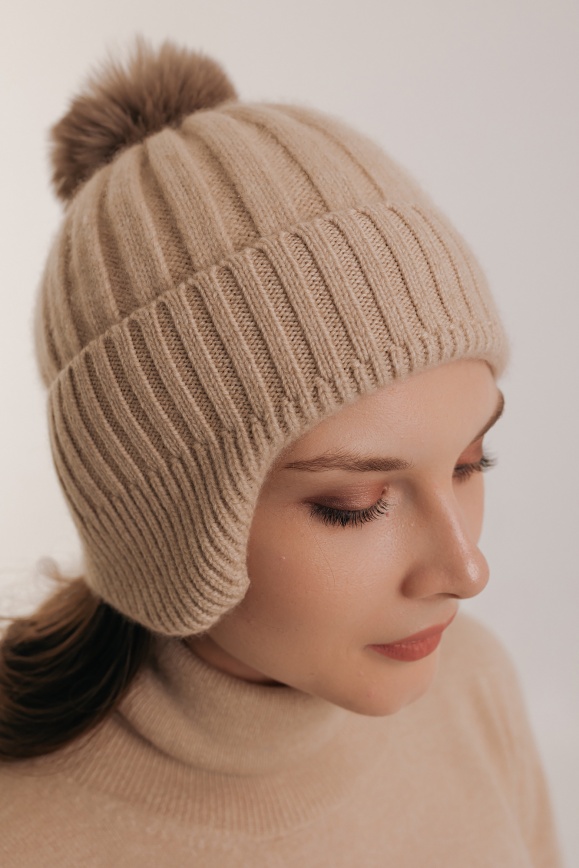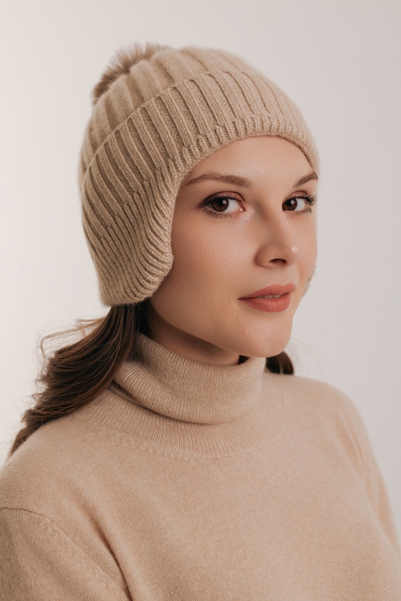 Шапка-ушанка бежевая из 100% кашемира