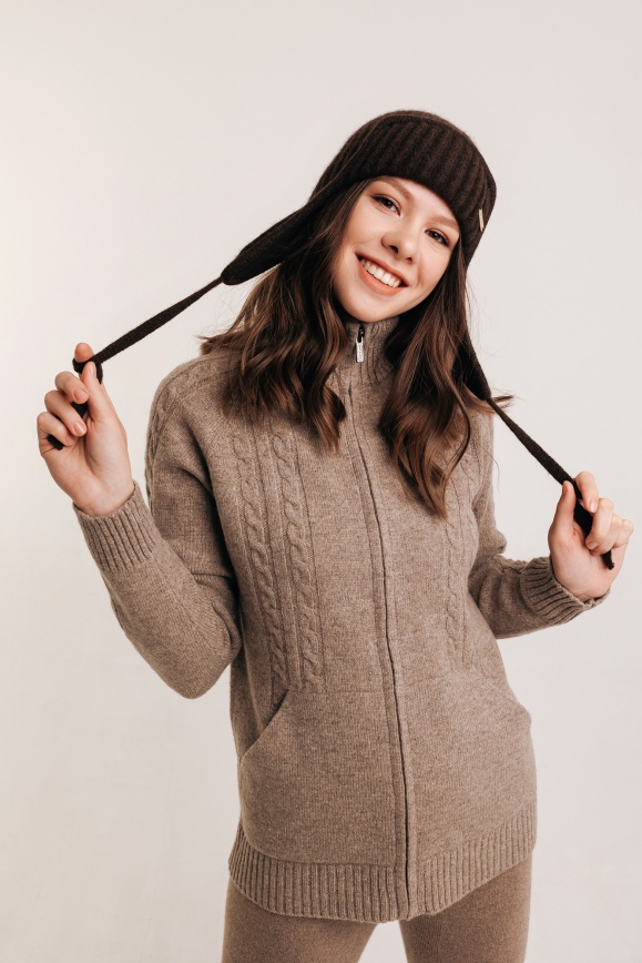 Шапка-ушанка коричневая из 100% пуха яка