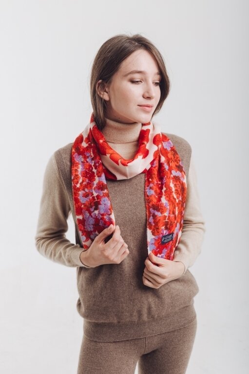 Шарф красный цветочный из кашемира