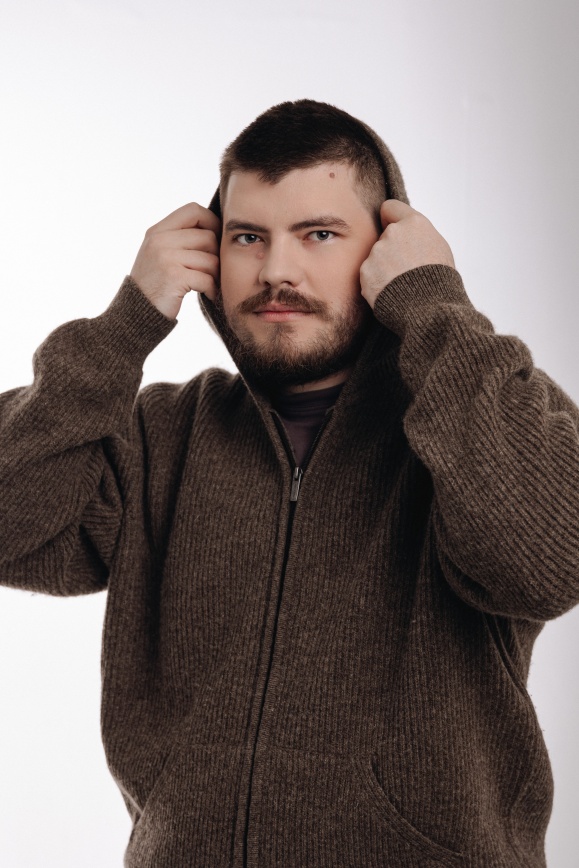 Кардиган с капюшоном из 100% шерсти яка коричневый