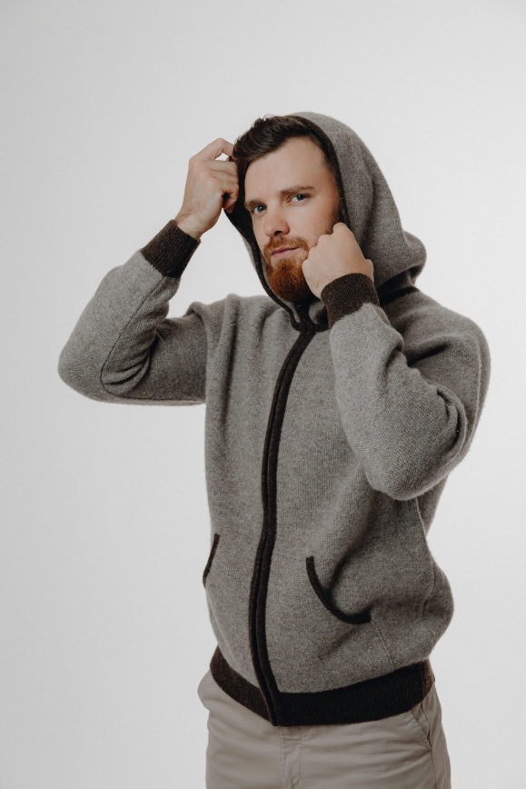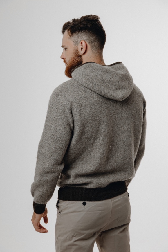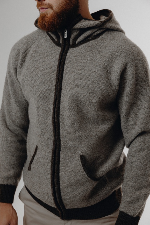 Кардиган с капюшоном из 100% шерсти яка серый