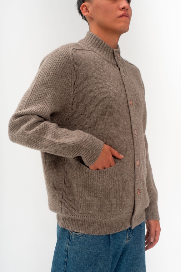 Кардиган цвета капучино из 100% шерсти яка на пуговицах