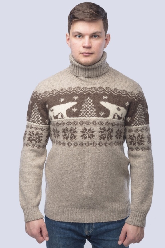 Свитер с горлом серая из 100% шерсти яка
