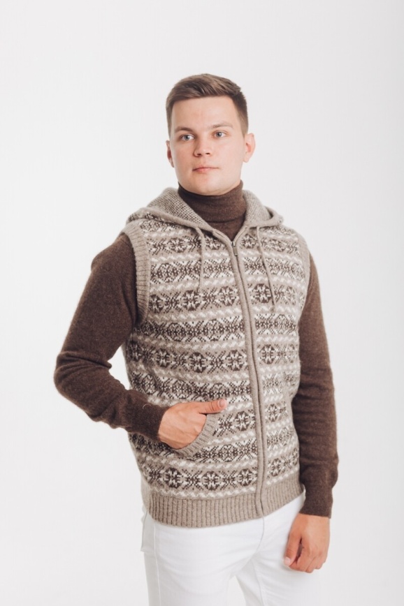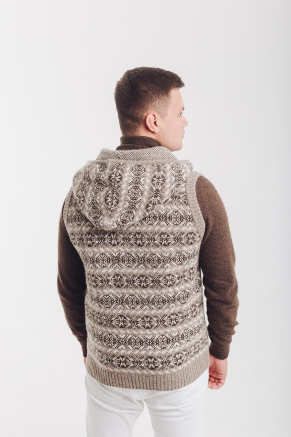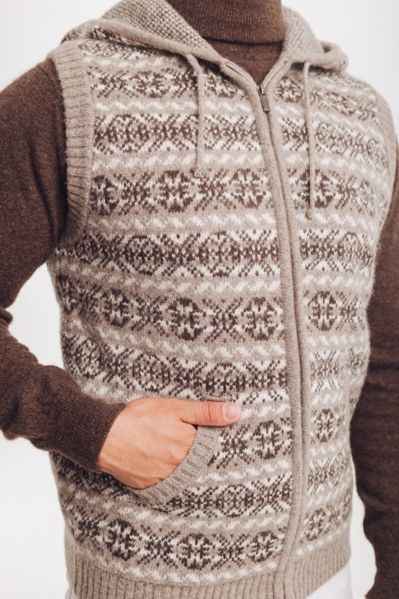 Безрукавка с капюшоном серая из 100% шерсти яка