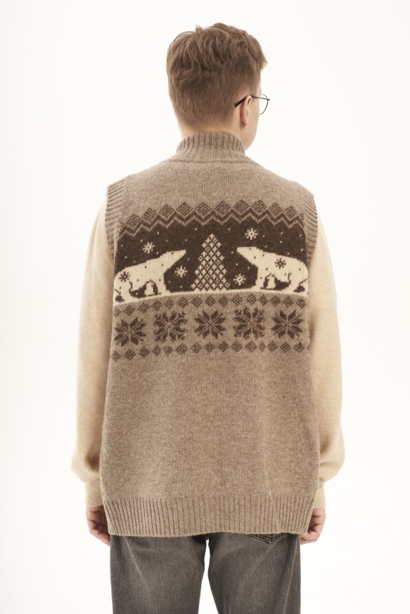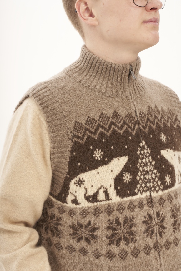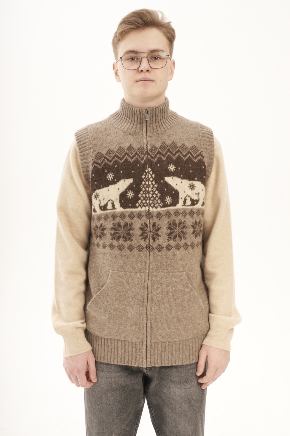 Жилет на молнии серый из 100% шерсти яка