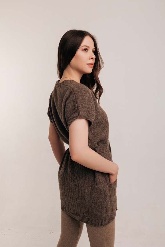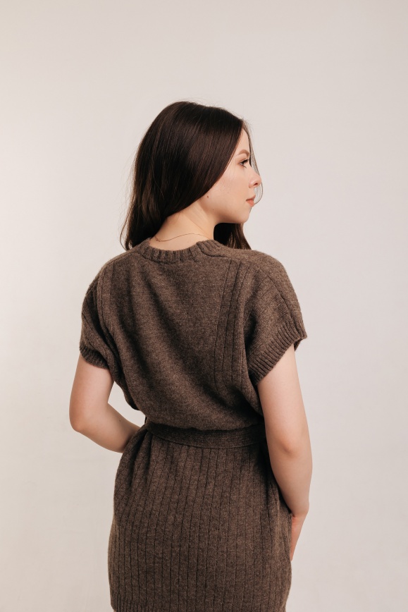 Кардиган коричневый без рукавов из 100% шерсти яка