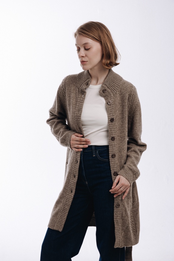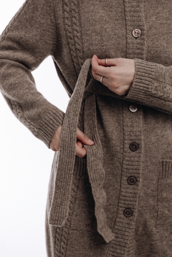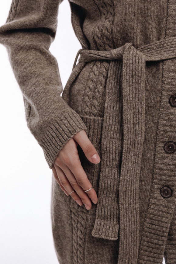 Кардиган с поясом из 100% шерсти яка цвета капучино