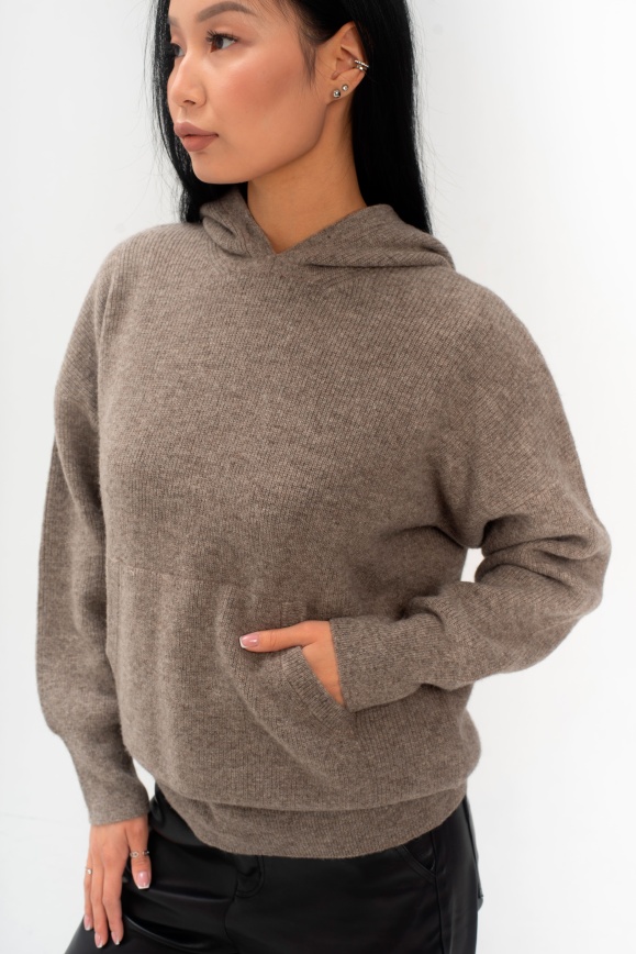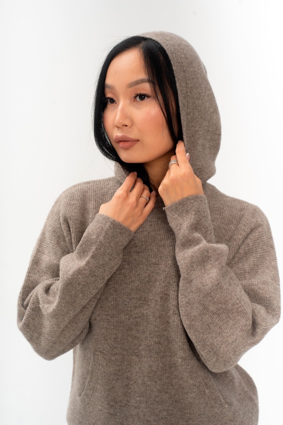 Худи серое из 100% шерсти яка