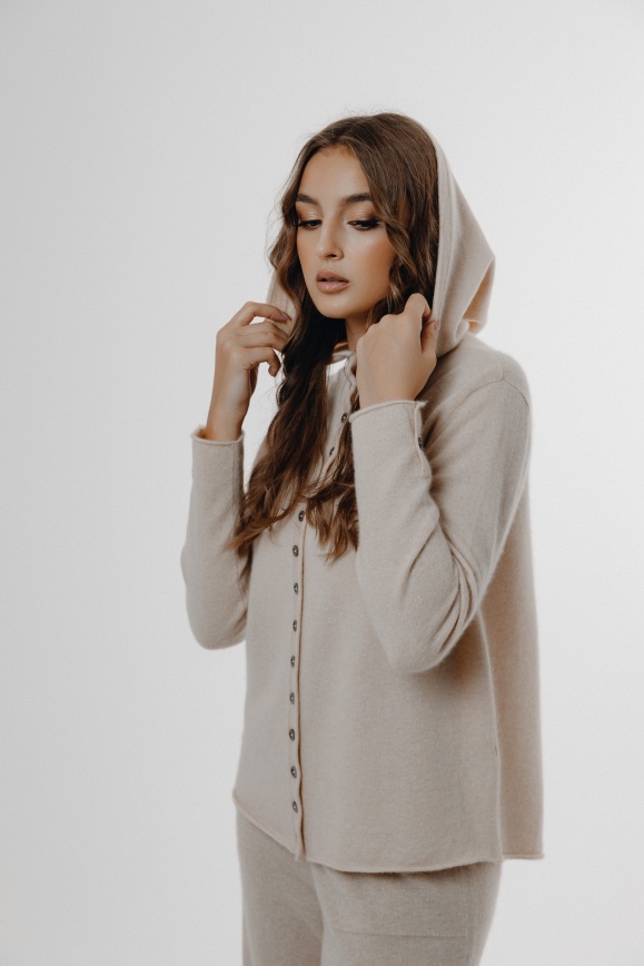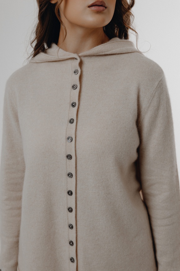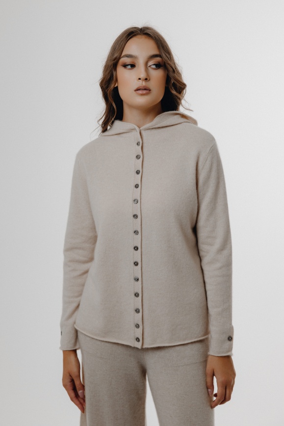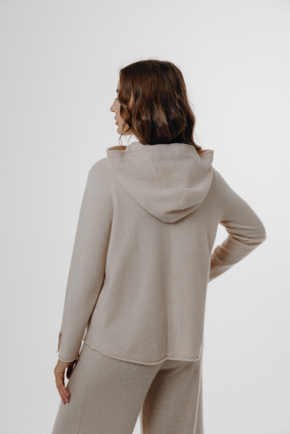 Кофта с капюшоном молочная из 100% кашемира