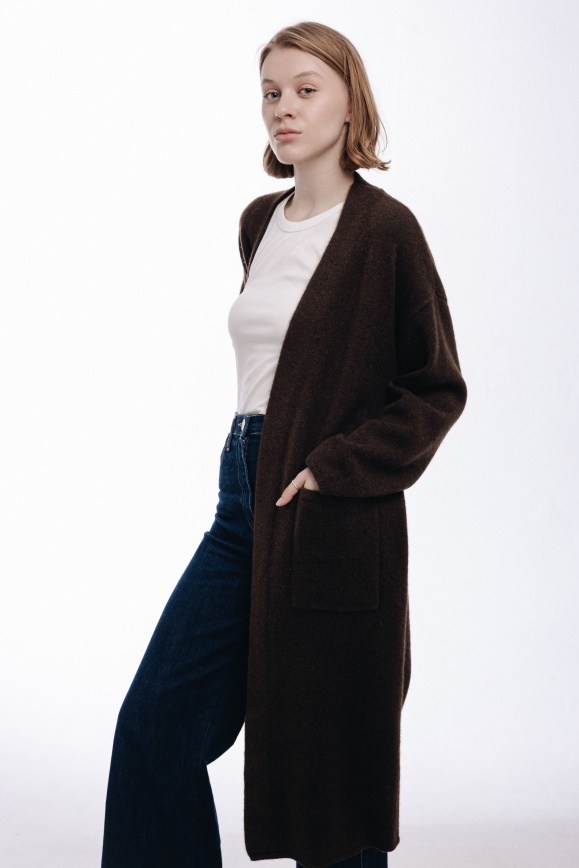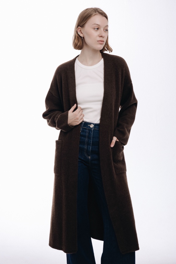 Пальто коричневое из 100% пуха яка