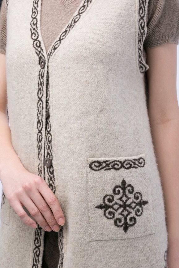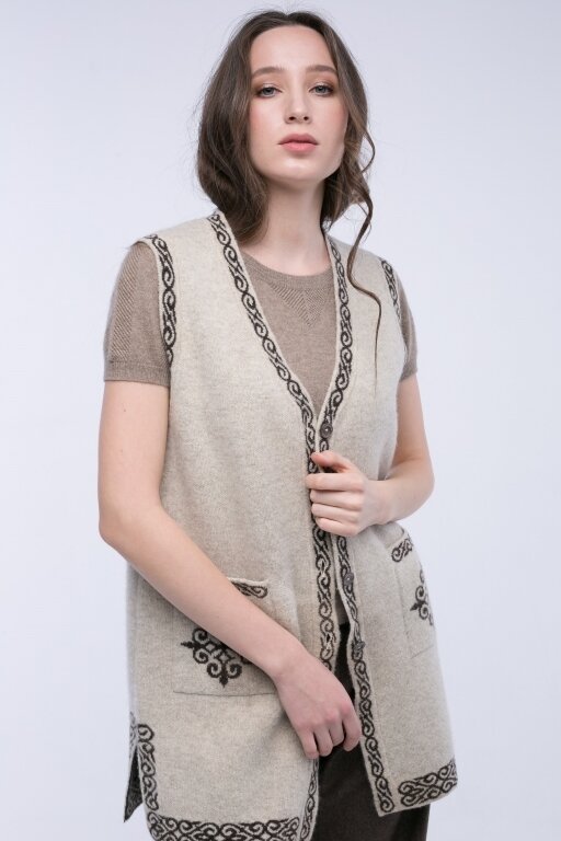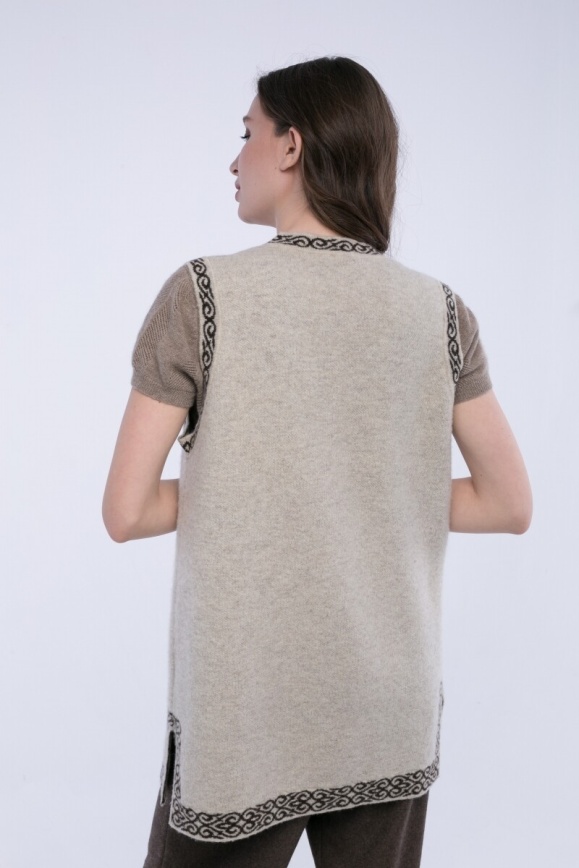Безрукавка белая удлиненная из 100% шерсти яка