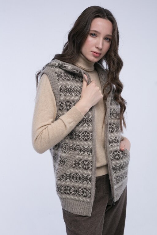 Безрукавка серая с капюшоном из 100% шерсти яка