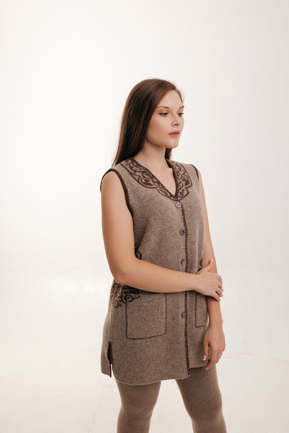 Безрукавка серая удлинённая из 100% шерсти яка