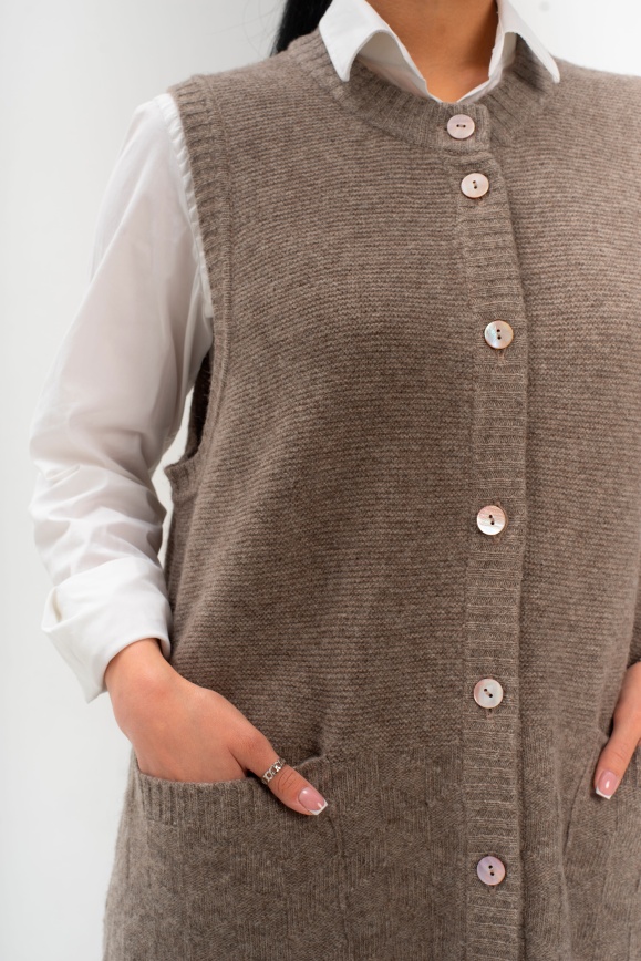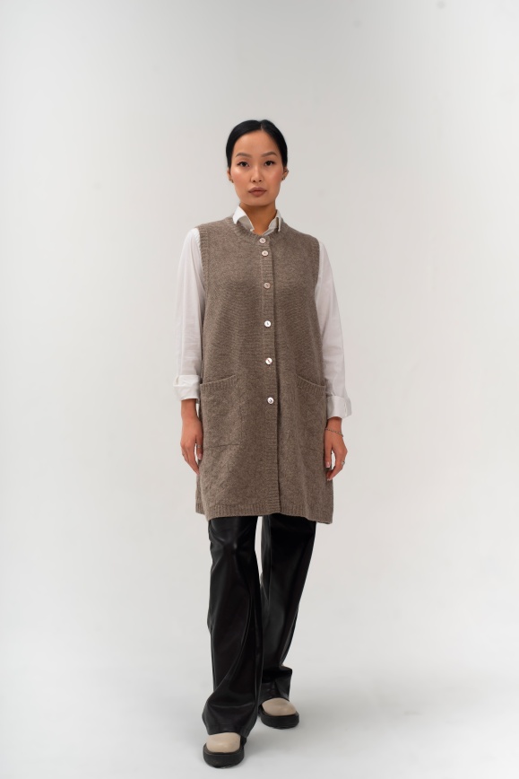 Безрукавка удлиненная цвета капучино из 100% шерсти яка