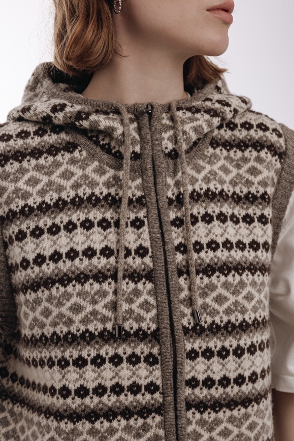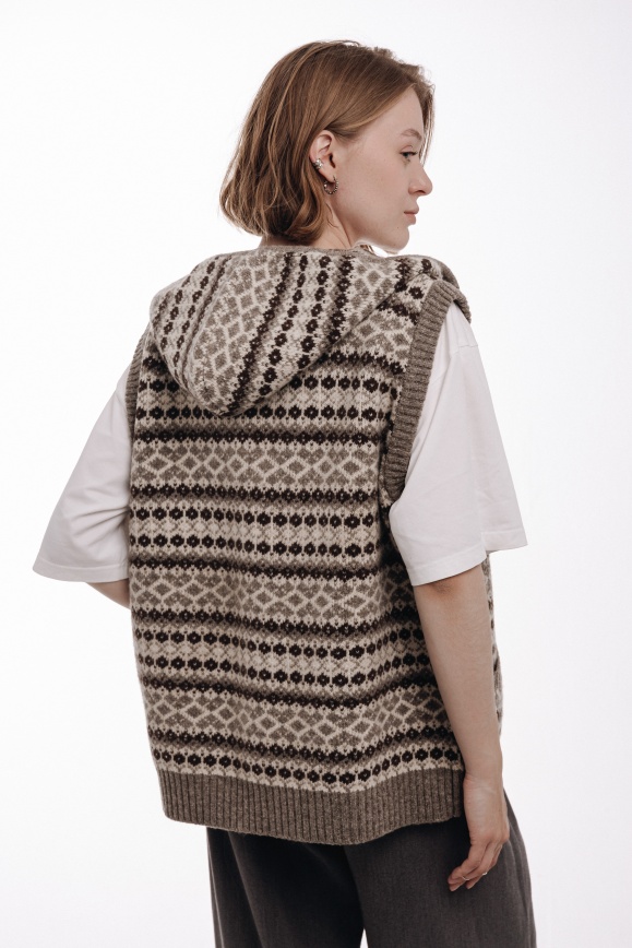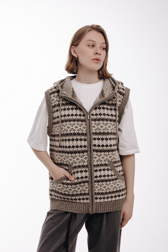 Жилет с капюшоном серый из 100% шерсти яка