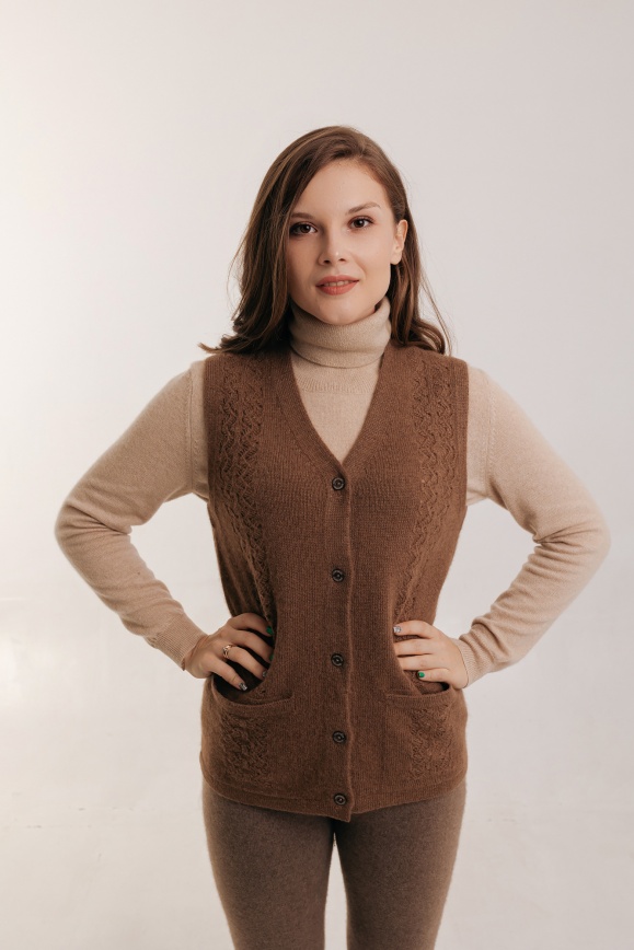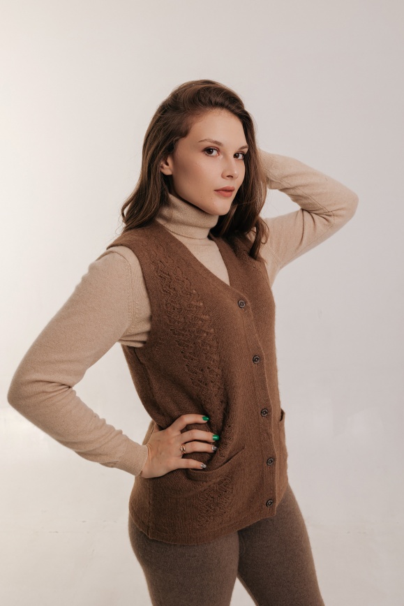 Жилетка на пуговицах из 100% шерсти верблюжонка цвета капучино